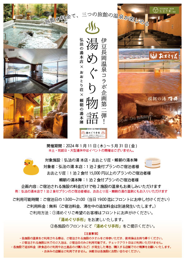 対象施設:弘法の湯 本店・おおとり荘・頼朝の湯 本陣