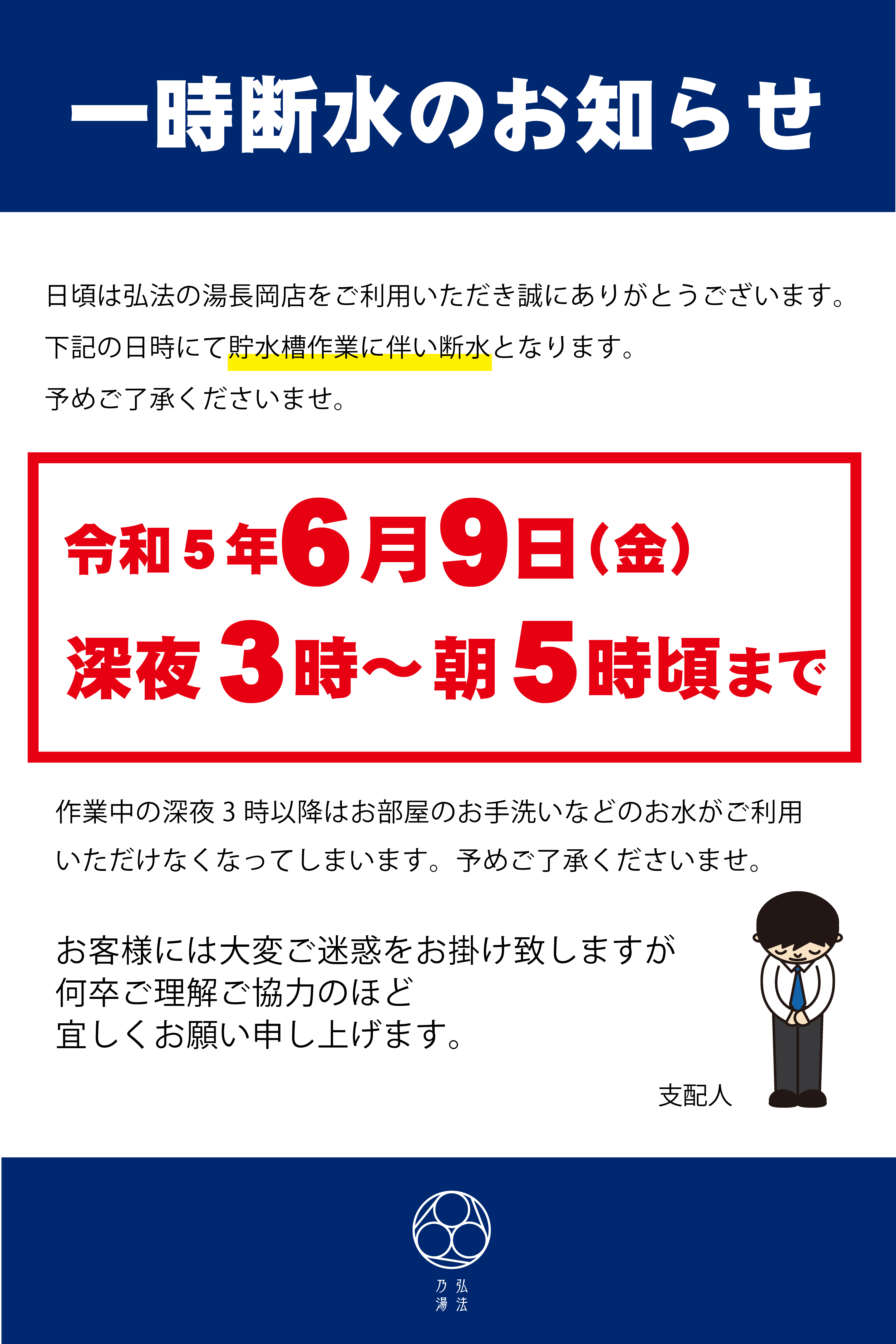 いつも弘法の湯長岡店をご利用いただきまして誠に有難うございます。