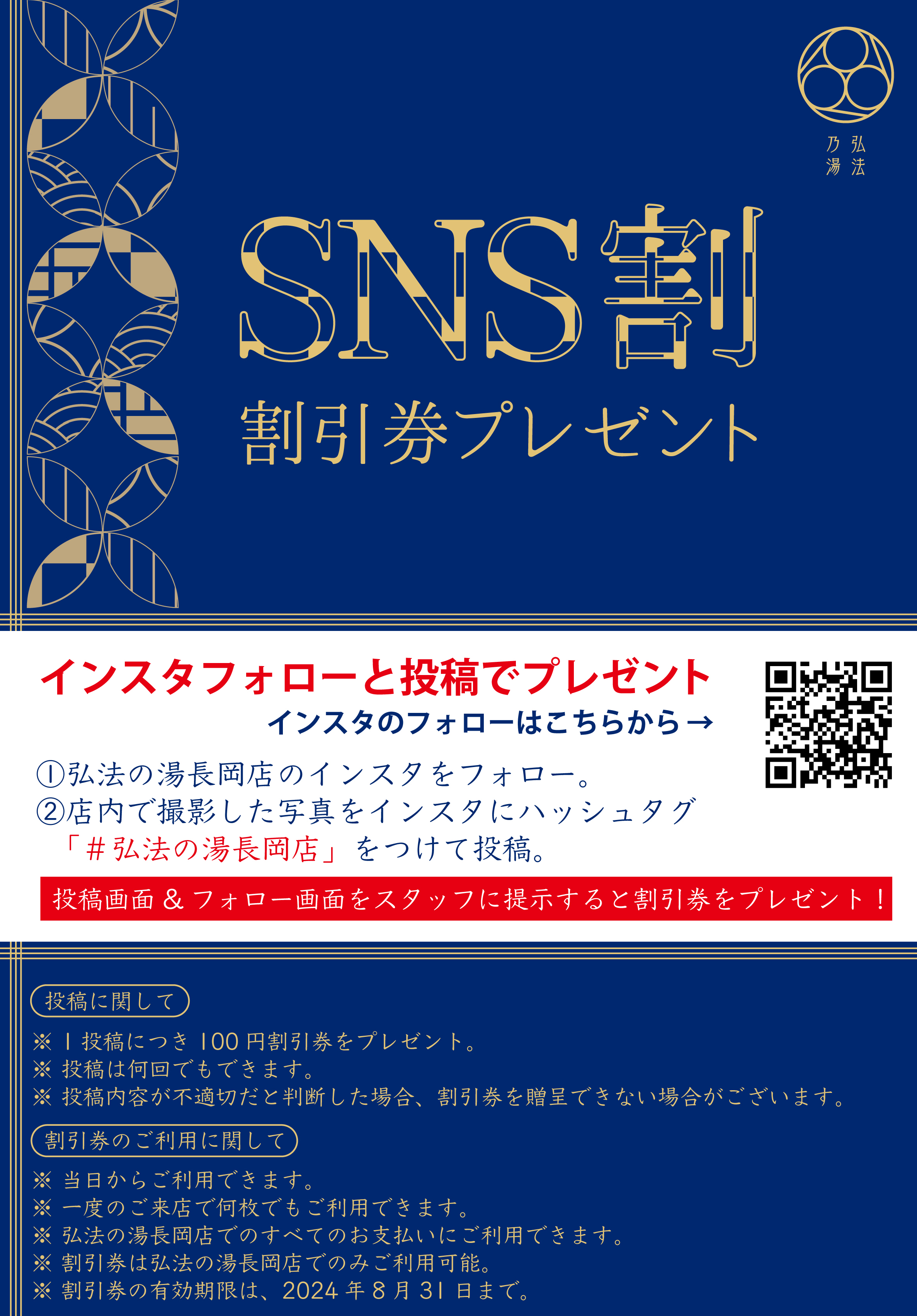 日頃は弘法の湯長岡店をご利用いただき誠にありがとうございます。