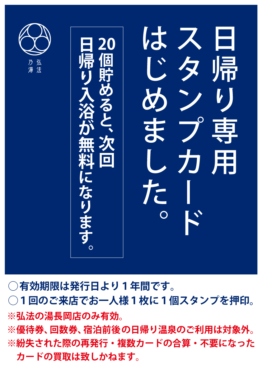 日頃は、弘法の湯長岡店をご利用戴きまして誠にありがとうございます。